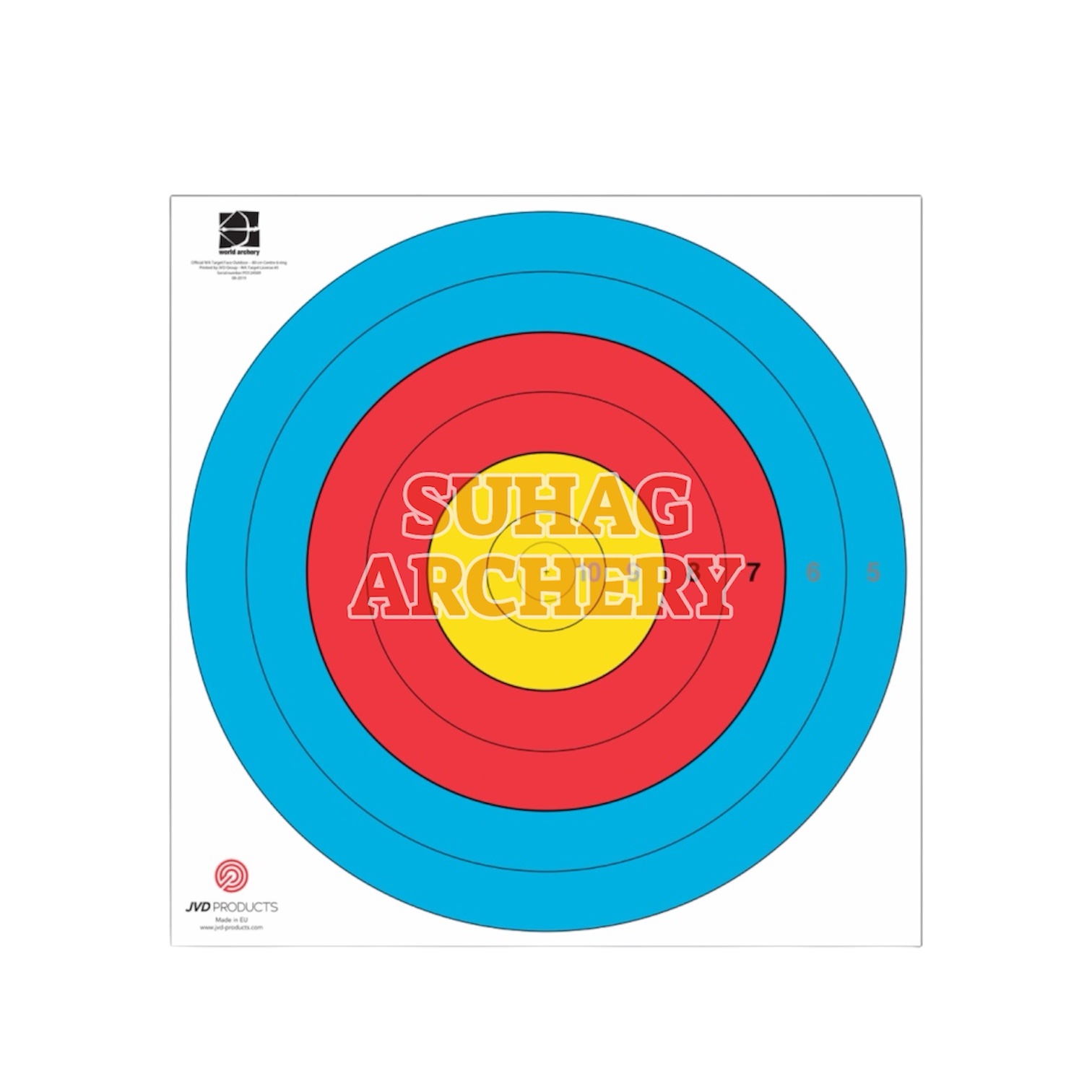 It features a 6-ring scoring system with a diameter of 80 cm.